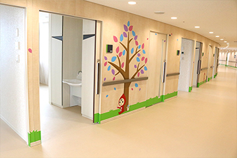 西館 ※画像をクリックして拡大 受付カウンター キッズコーナー 待合スペース 外来診察室 認知症デイケア 児童思春期デイケア 和室 病棟フロア① 病棟フロア② ボルダリングウォール 休憩スペース カフェ