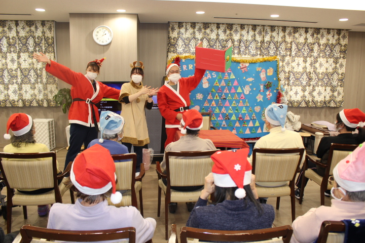 デイケアにも無事にサンタさんとトナカイがやってきました。