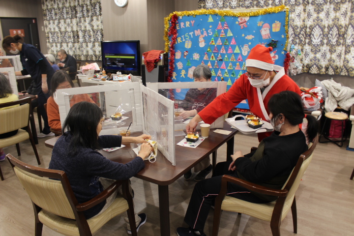 プログラムの〆はサンタさんがテーブル毎にケーキを配ってくれました。