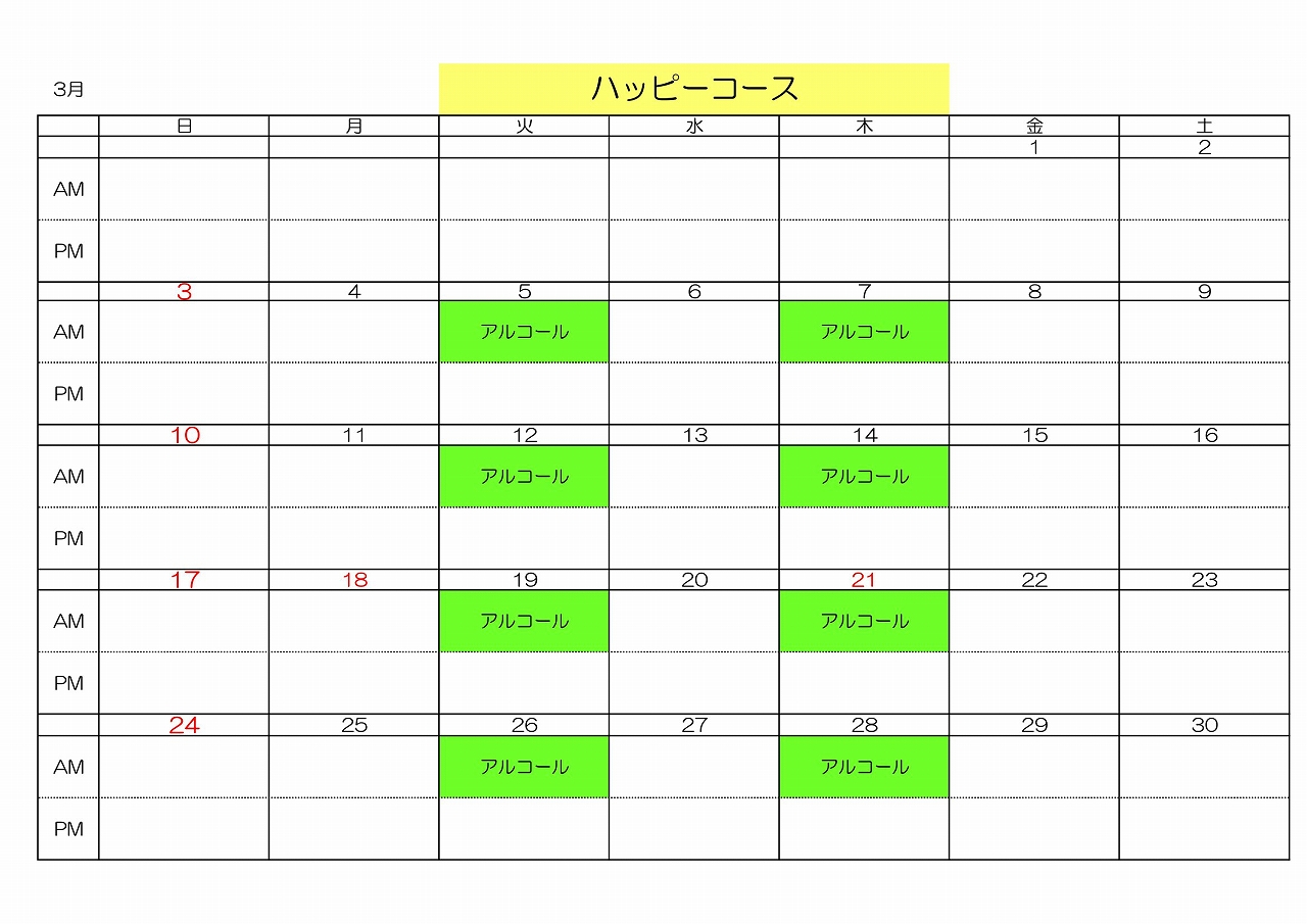 デイケア室 各コース 2024年3月予定表