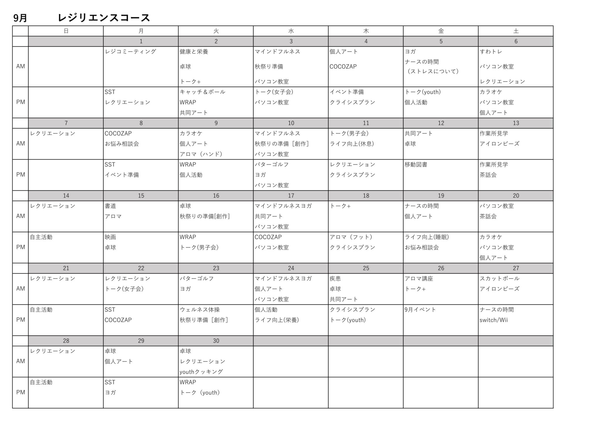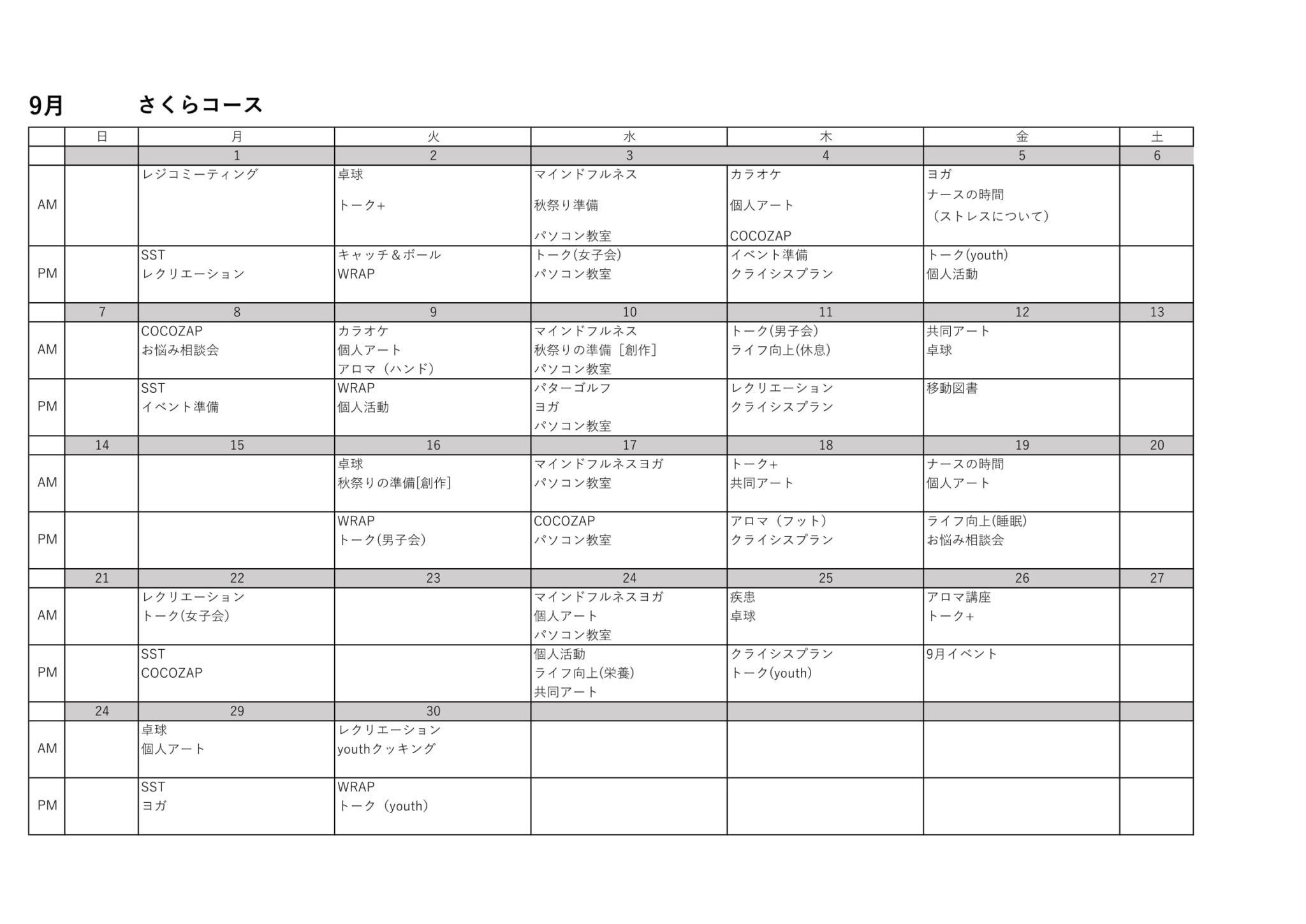※各コース予定を急遽変更する場合がございますので、詳細につきましてはデイケアスタッフにお問い合わせください。