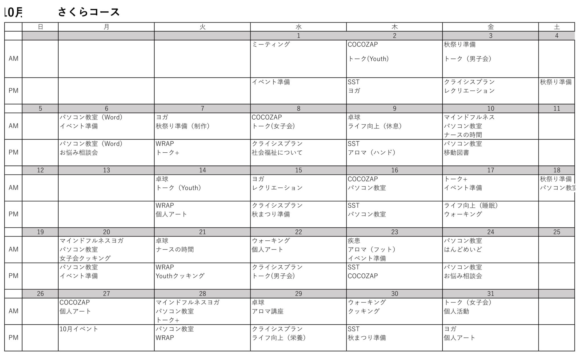 ※各コース予定を急遽変更する場合がございますので、詳細につきましてはデイケアスタッフにお問い合わせください。