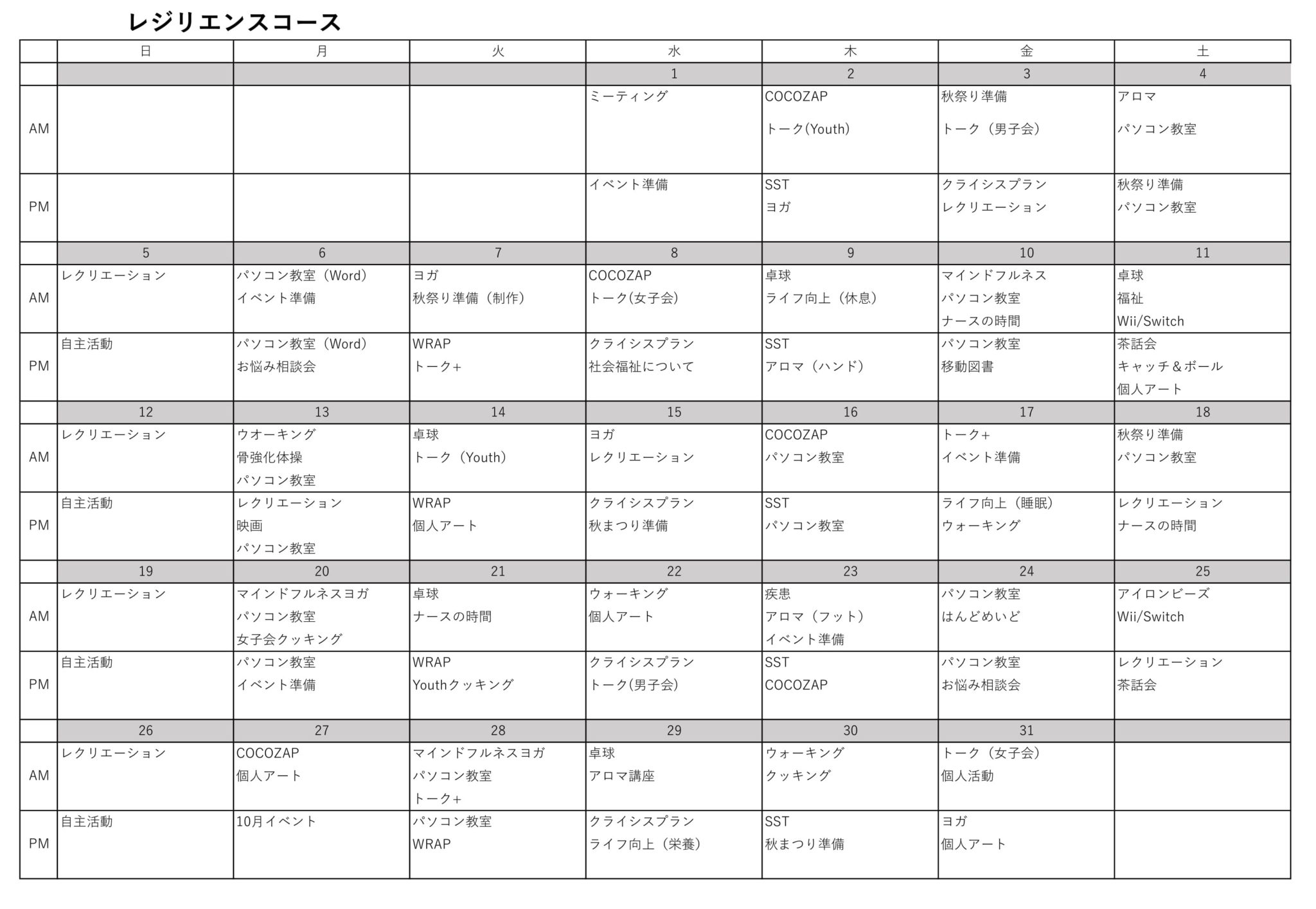 ※各コース予定を急遽変更する場合がございますので、詳細につきましてはデイケアスタッフにお問い合わせください。