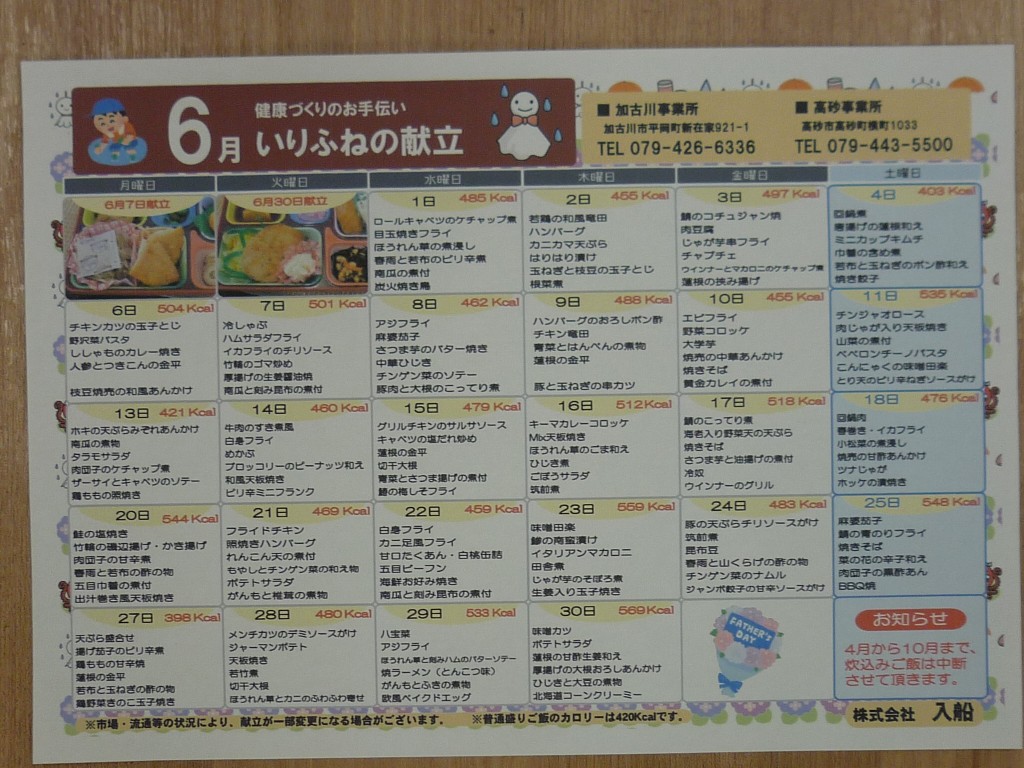 各デイケア、6月のお弁当の予定です^^
